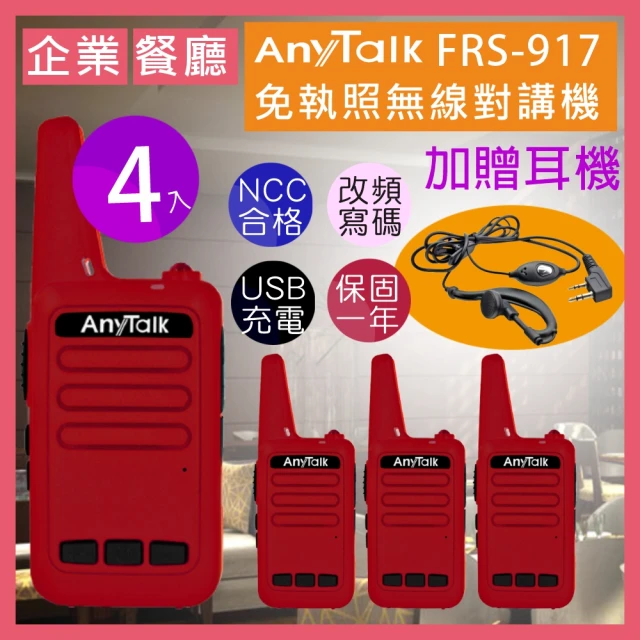 【momoDCARD評價】 【AnyTalk】◤二組四入◢FRS-917免執照無線對講機(送耳麥 附USB充電線) (2)